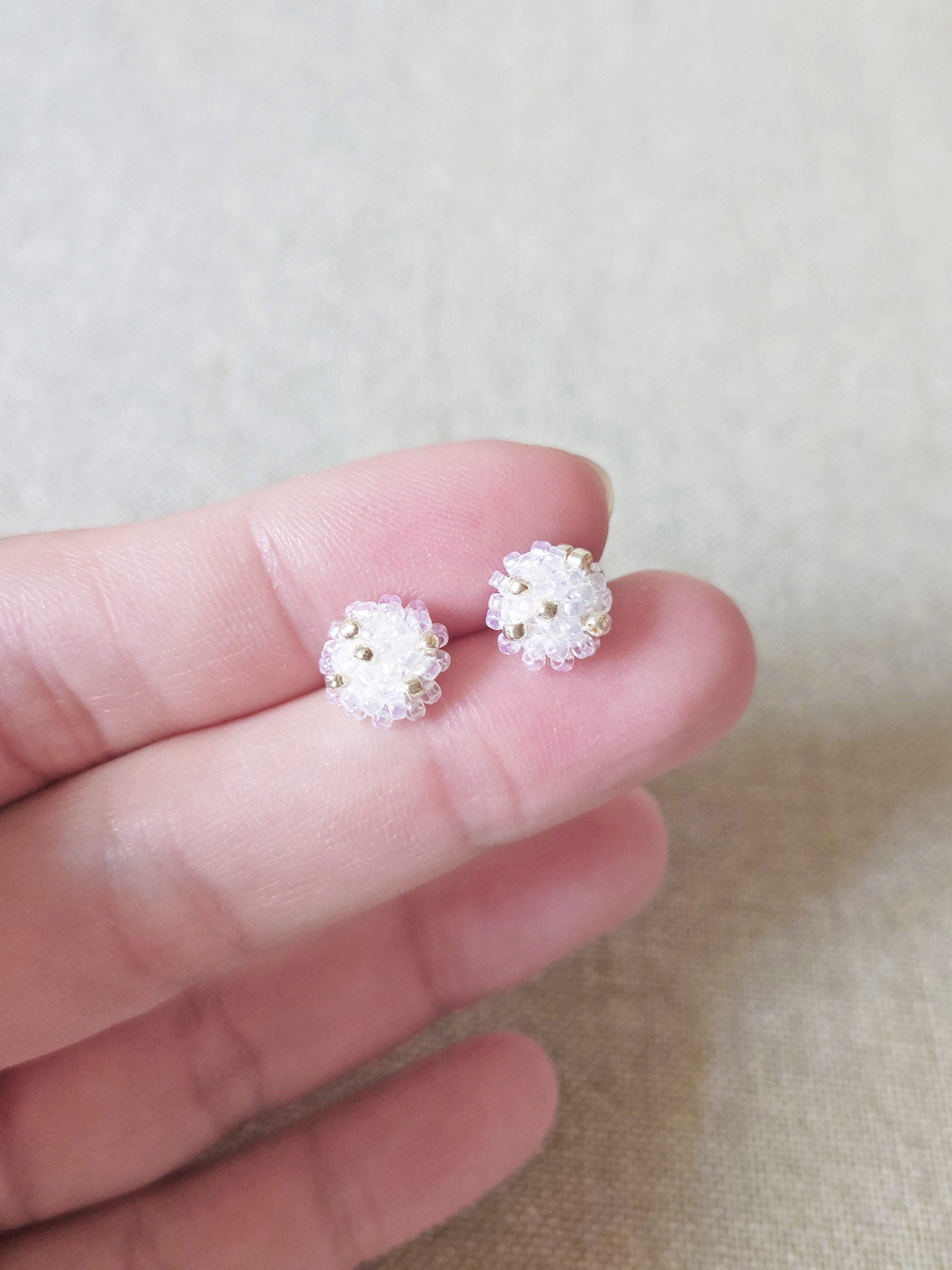 Luminous gold seed beads with lasting shine are crocheted together with a canvas of white.