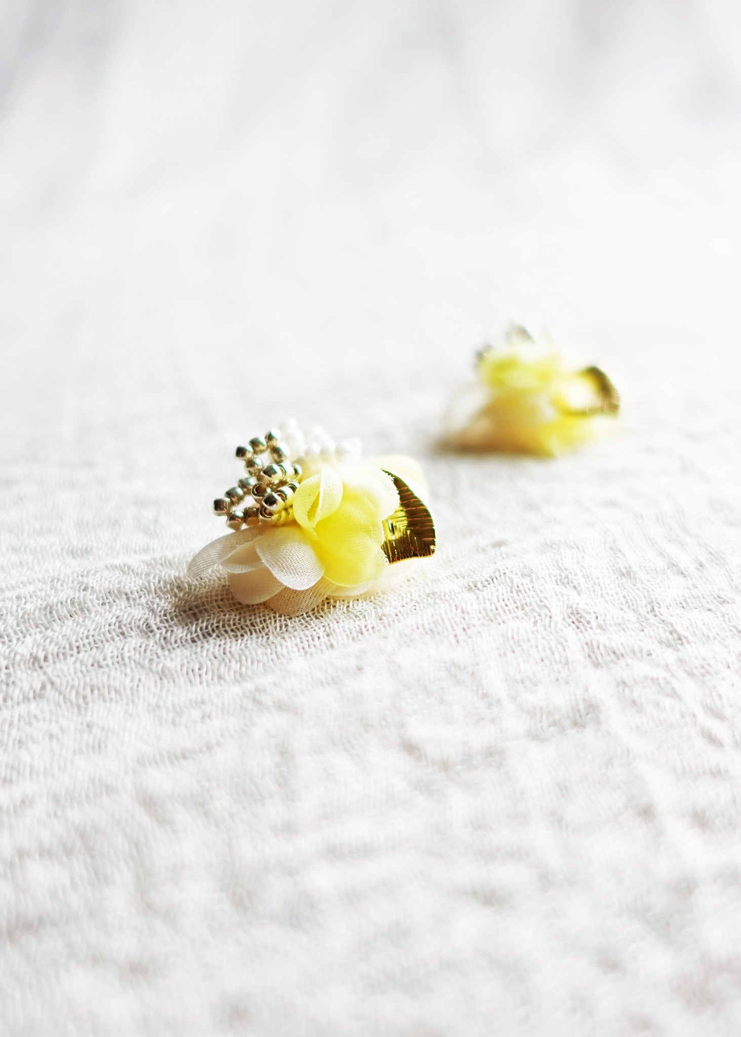 Aurea Bloom Stud Earrings in Yellow Left Closest