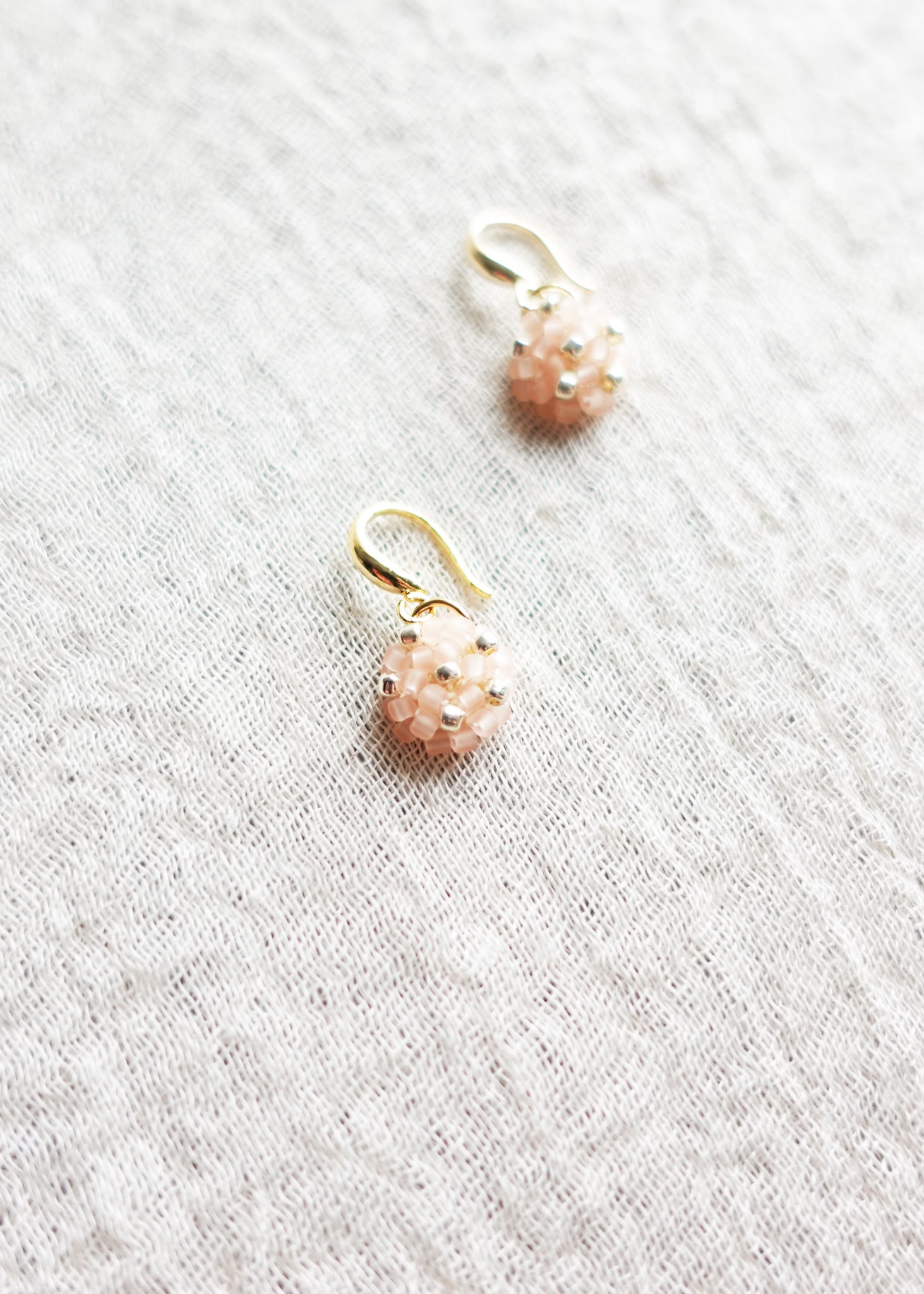 Star Dust Petite Drop Earrings in Blush Pink showcase delicately crocheted charms that hang gracefully from gold-plated hooks. Handcrafted with care, each petite drop is lightweight and subtly textured, adding quiet elegance to every movement.