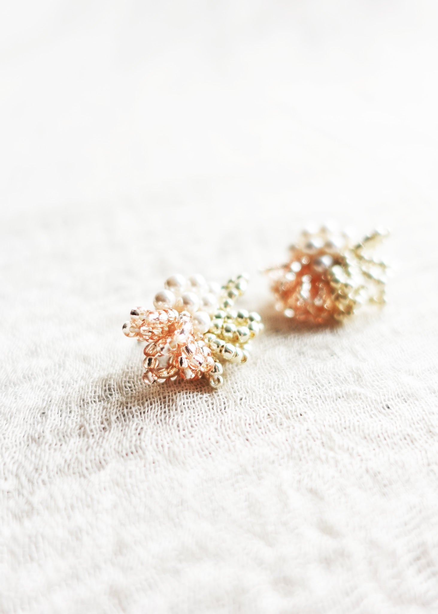 Handmade Earrings With Pearls Camellia Dip in Champagne Pink