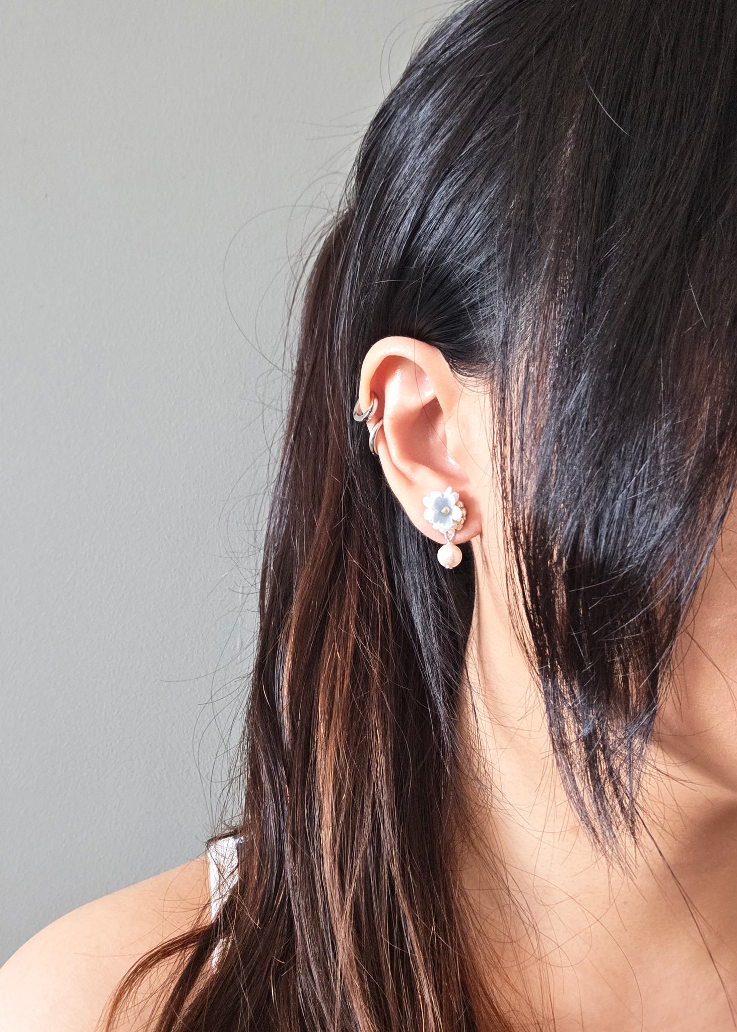 Light Blue Flower Earrings Cyme Petite Snowball