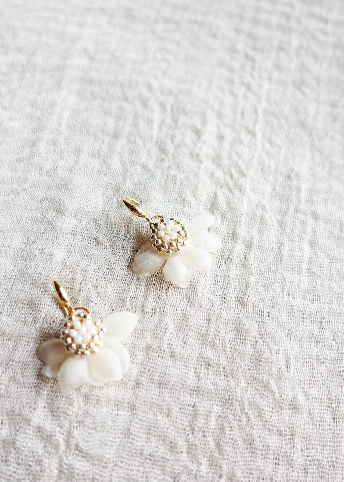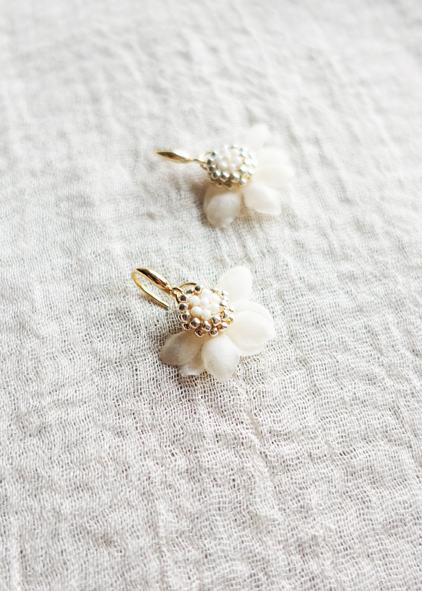Wedding Flower Earrings Ethereal Drop in White Model