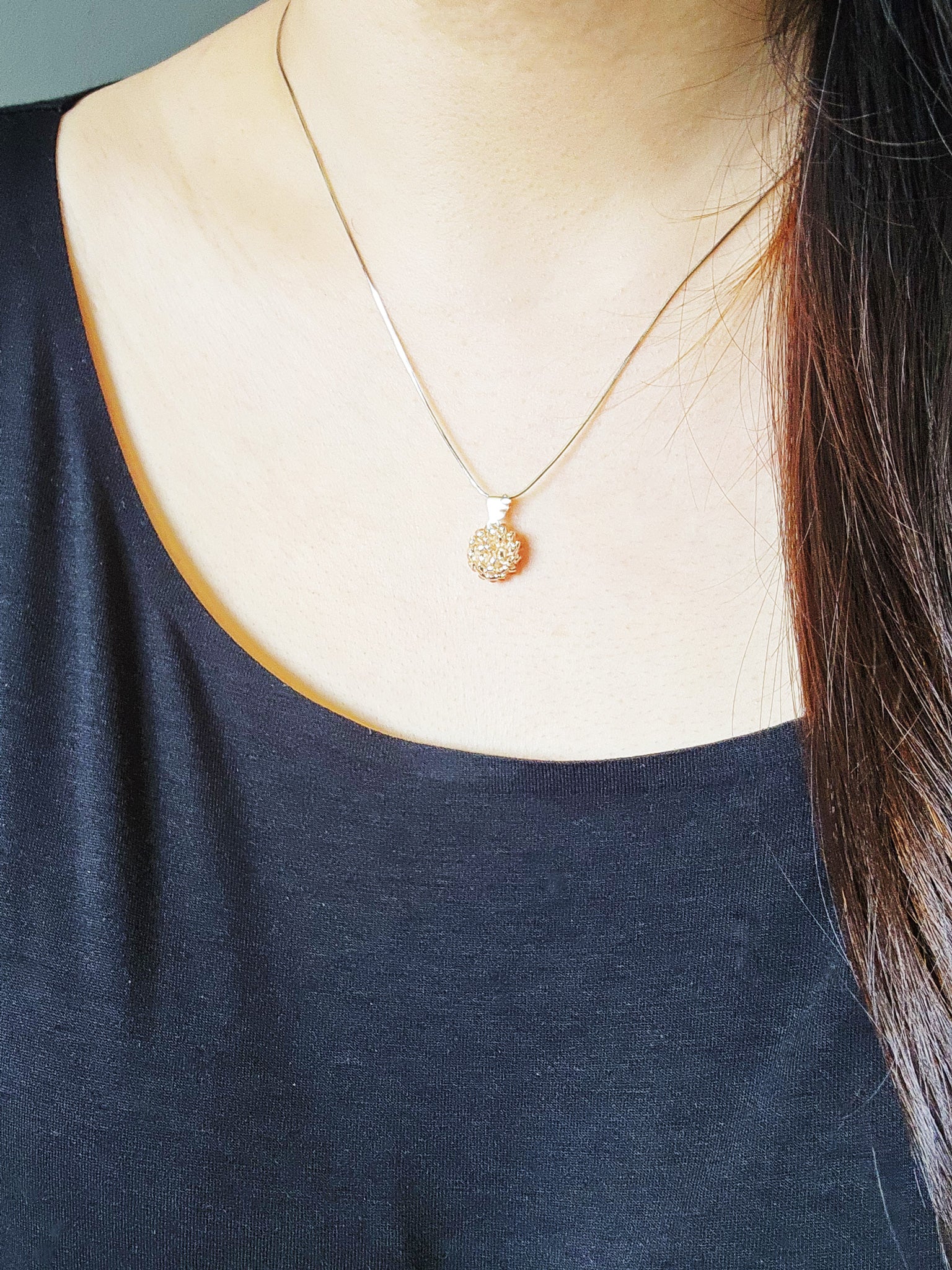 Pendant measures approximately 1cm in diameter. Chain measures approximately 45cm in length.