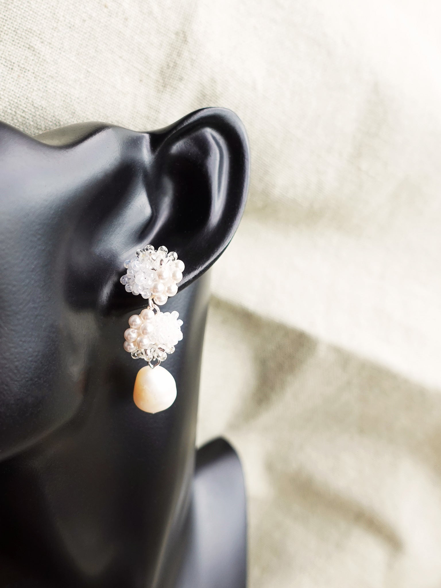 Charms handcrafted by crocheting together Swarovski crystal pearls with a mix of beautiful white and silver glass seed beads.
