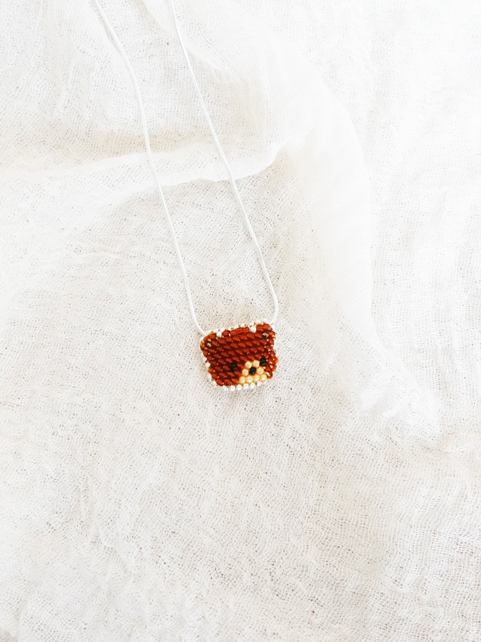 This brown bear necklace 🐻🤎 is crocheted by hand with delicate glass beads and cordonnet cotton thread, and finished with a sterling silver chain for a touch of elegance. Its charming bear design adds a warm, nature-inspired accent to any outfit. Lightweight and versatile, this handmade necklace is perfect for animal lovers who appreciate unique, handcrafted jewelry with cozy woodland vibes.