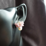 Fluffy studs of mauve purple, with a gold crown. Silky crystal pearls drop below.