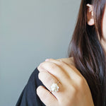 Free sized ring band is adjustable and can be worn for common ring sizes of US 5 to 7.