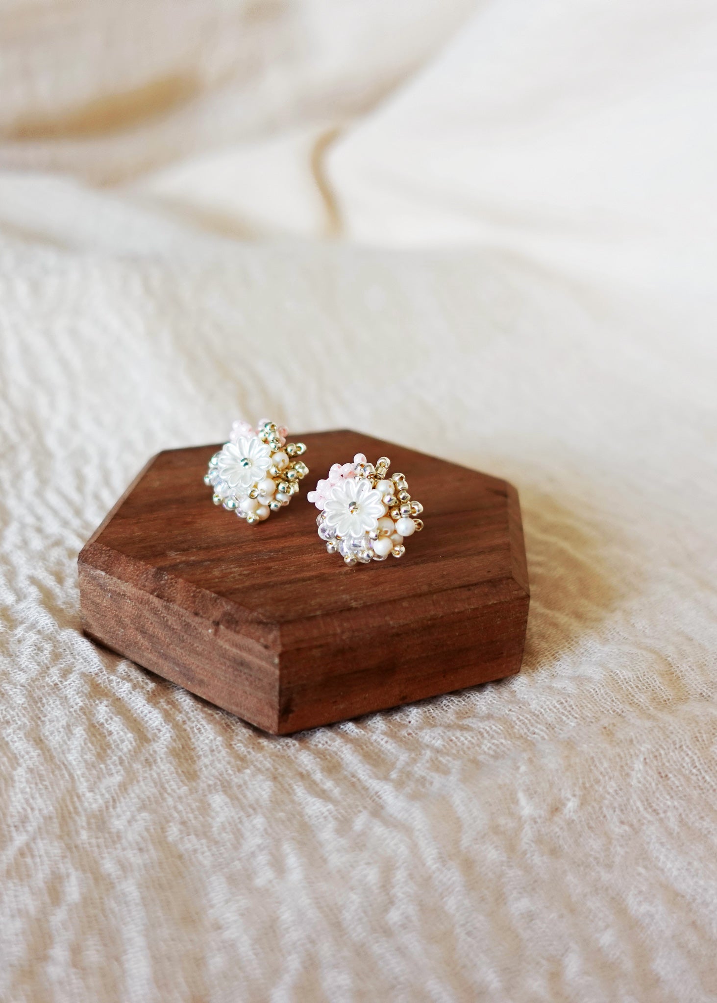Handcrafted with fine cordonnet cotton thread and delicate glass beads using our signature crocheted technique, the Dianelle Earrings feature a graceful floral design in soft pink tones. Each earring is thoughtfully made by hand, capturing the gentle charm and femininity of a blooming flower. Delicate yet expressive, they embody refined craftsmanship and a touch of romantic elegance, perfect for any occasion.