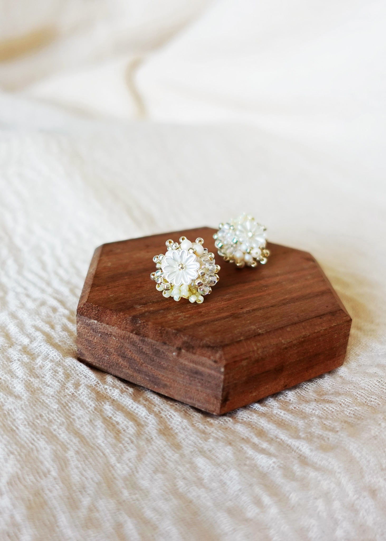 Handcrafted with fine cordonnet cotton thread and delicate glass beads using our signature crocheted technique, the Dianelle Earrings feature a graceful floral design in soft pink tones. Each earring is thoughtfully made by hand, capturing the gentle charm and femininity of a blooming flower. Delicate yet expressive, they embody refined craftsmanship and a touch of romantic elegance, perfect for any occasion.
