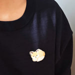 Meet your new tiny woodland friend—this charming fox brooch captures the cozy “loaf” pose with delicate crochet stitches. Handmade using fine cotton cordonnet thread and shimmering glass beads, it features detailed accents that bring the little fox to life.