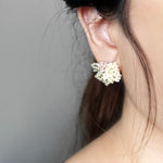 Big fluffy studs of pale pink and milk white, with a gold crown.