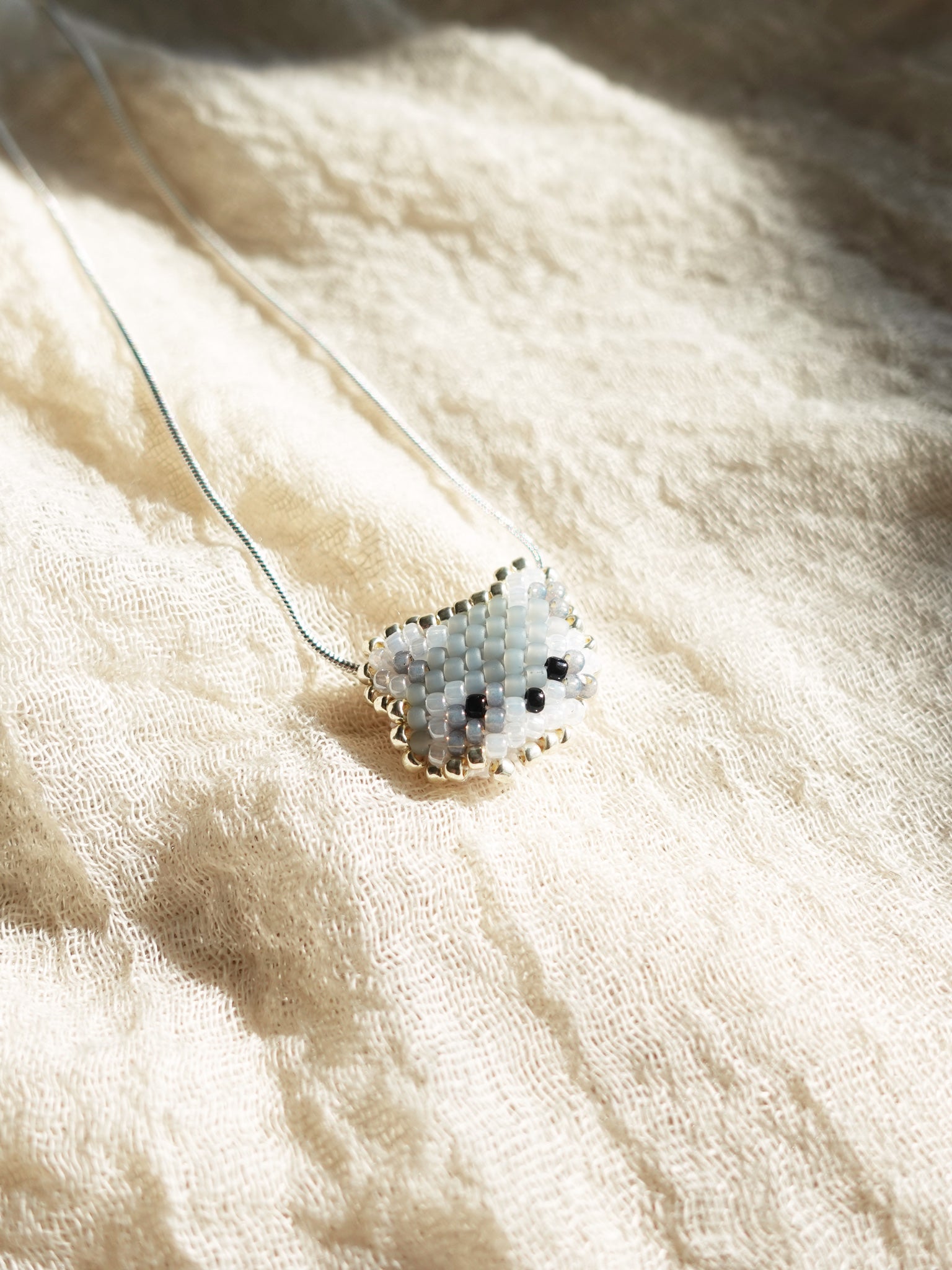 Bring a little woodland magic wherever you go. This raccoon necklace is beautifully handcrafted with fine cotton cordonnet thread and glass beads, showcasing intricate crochet stitches that capture the playful and curious spirit of the raccoon. The delicate craftsmanship creates a charming piece that adds a unique, handmade touch to any outfit.