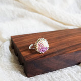 The Kaylee Ring is crocheted using delicate purple and gold beads, creating a beautiful blend of elegance and charm. Handcrafted with fine cordonnet cotton thread, this ring offers a lightweight and unique accessory perfect for adding a subtle touch of sophistication to any outfit.