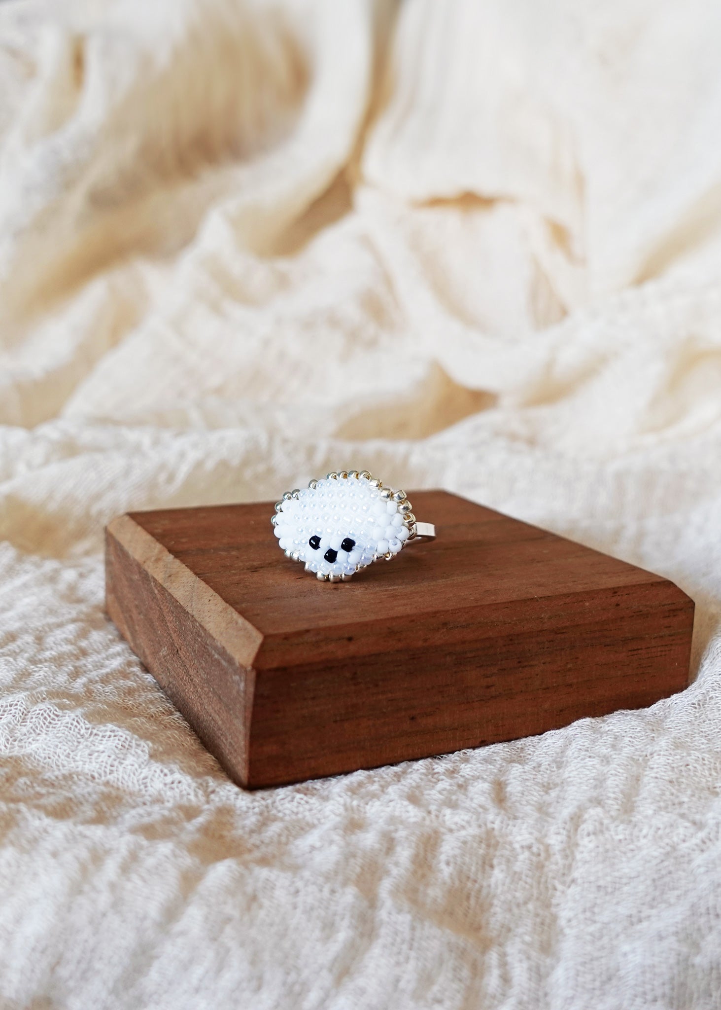 Handcrafted with delicate glass beads and fine cordonnet cotton thread, this ring showcases the Poodle in white with meticulous attention to detail. Each piece is carefully shaped and crocheted by hand, highlighting the precision and artistry involved in its creation. This ring is a testament to thoughtful craftsmanship, offering a unique and refined keepsake for dog lovers and collectors who appreciate high-quality, handcrafted jewelry.