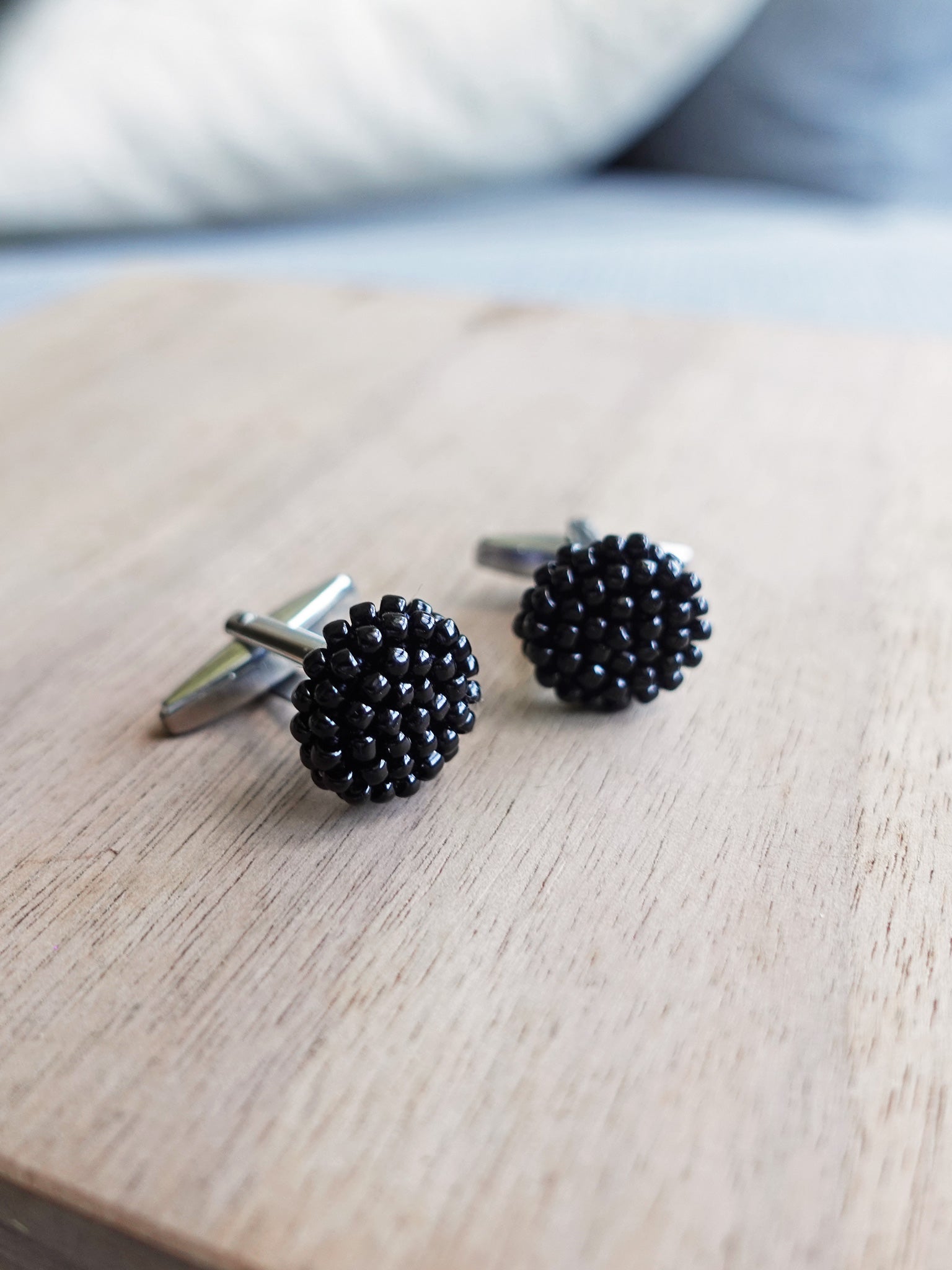 Handcrafted with black glass seed beads, this elegant accessory exudes sophistication and exclusivity. Experience the world of art and fashion in a wearable piece, crafted with exquisite attention to detail.