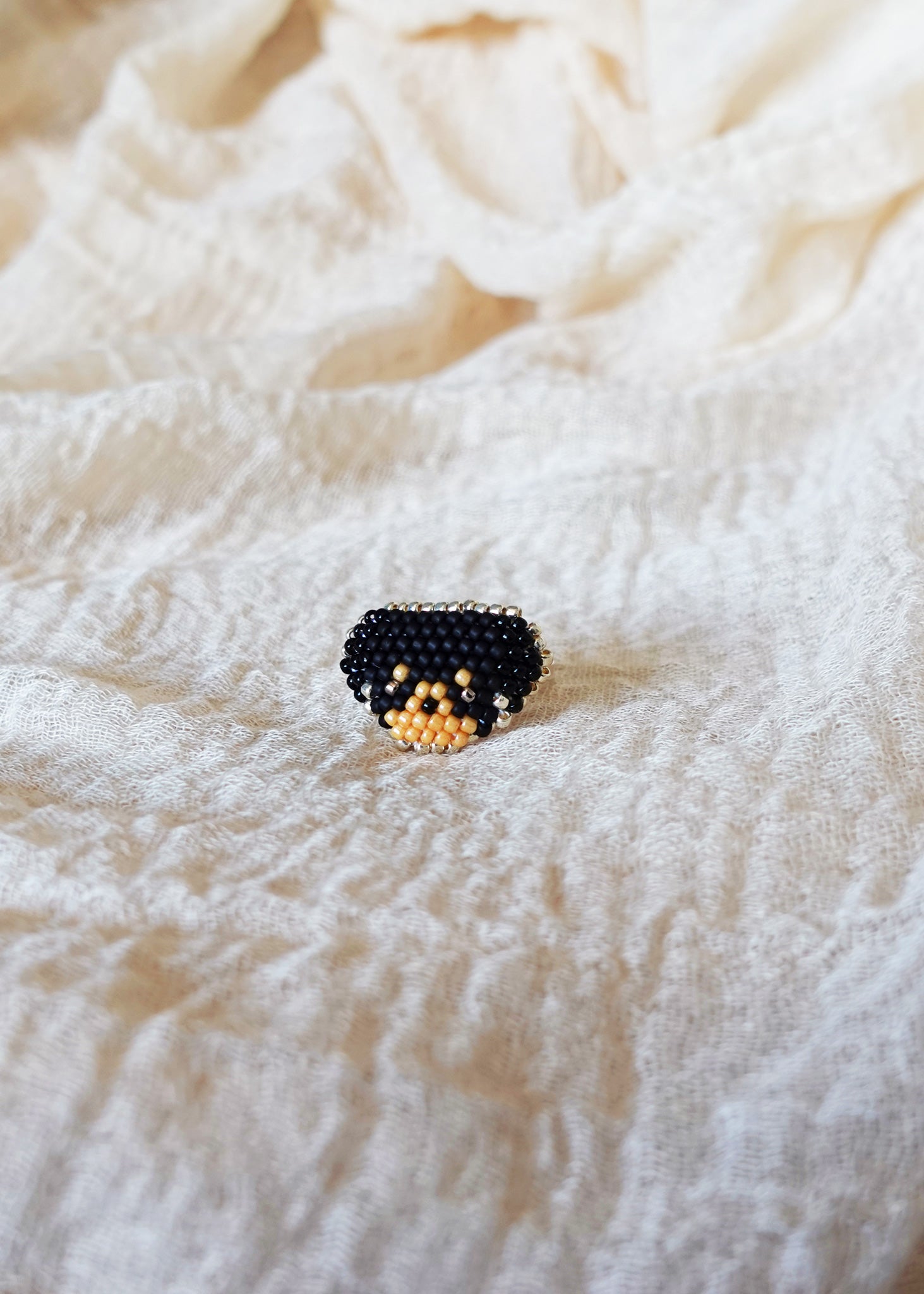 Meticulously handcrafted using delicate glass beads and fine cordonnet cotton thread, this miniature ring celebrates the Rottweiler’s loyal and confident character. Each piece is thoughtfully created, capturing the essence of the breed in intricate detail, making it a unique keepsake for dog enthusiasts and collectors alike.