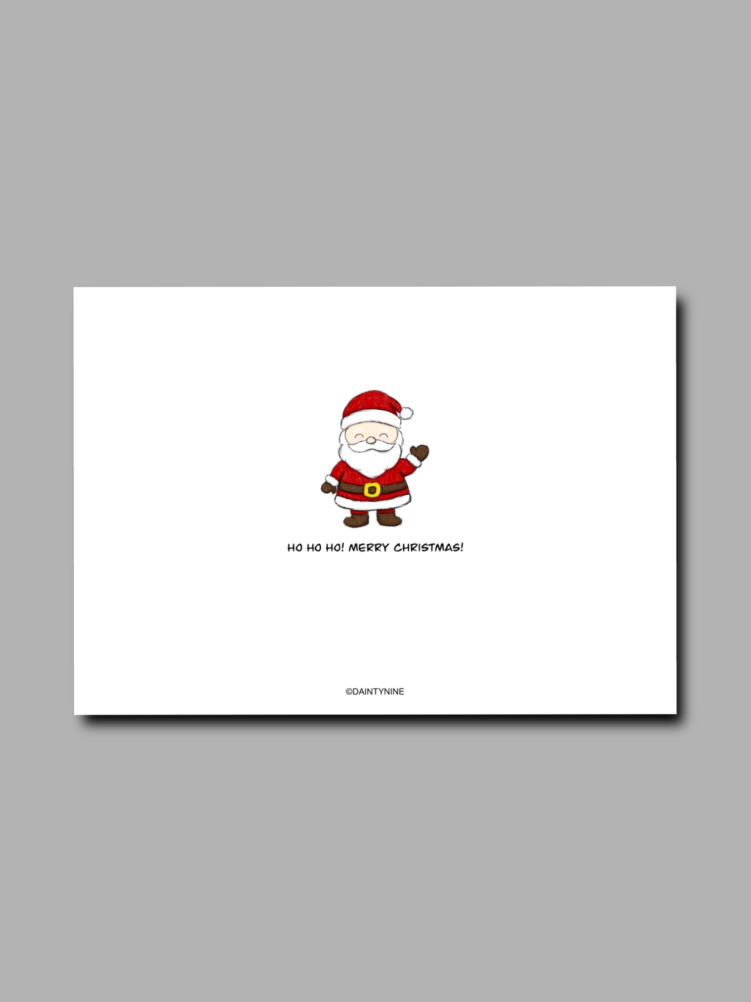A cheerful Christmas card featuring Santa Claus — perfect for spreading festive joy. Each card is printed with our original hand-drawn artwork on one side and left blank on the other for your personal message. Add it to your gift for a touch of Christmas magic