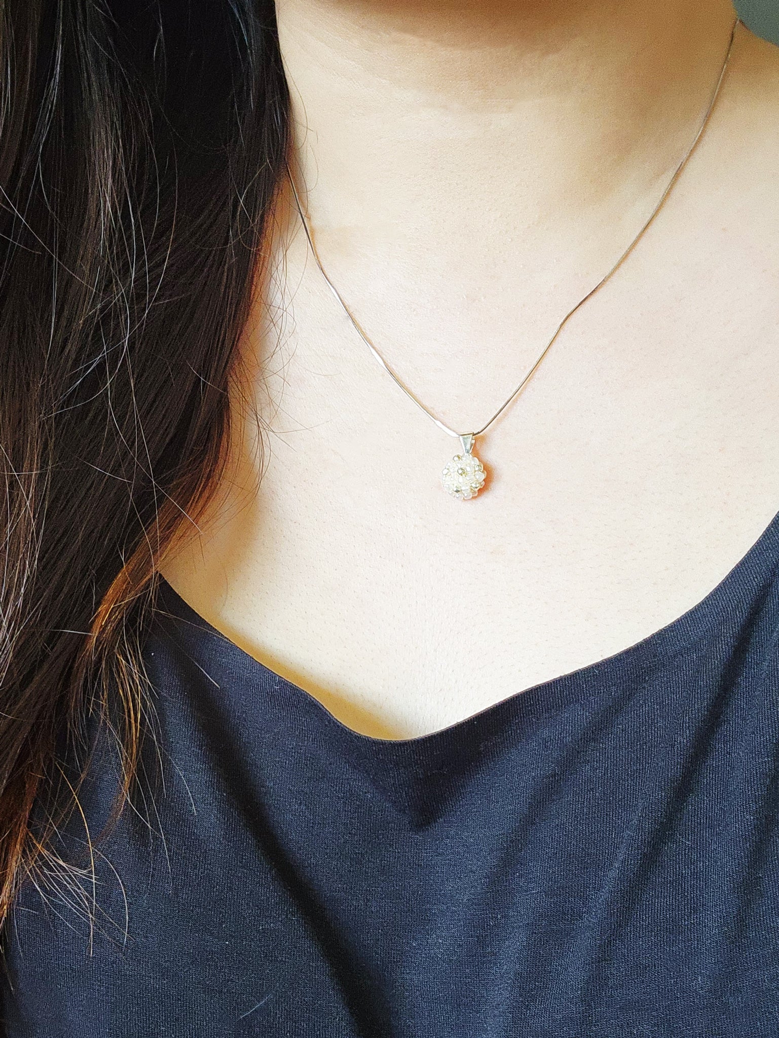 Pendant measures approximately 1cm in diameter. Chain measures approximately 45cm in length.